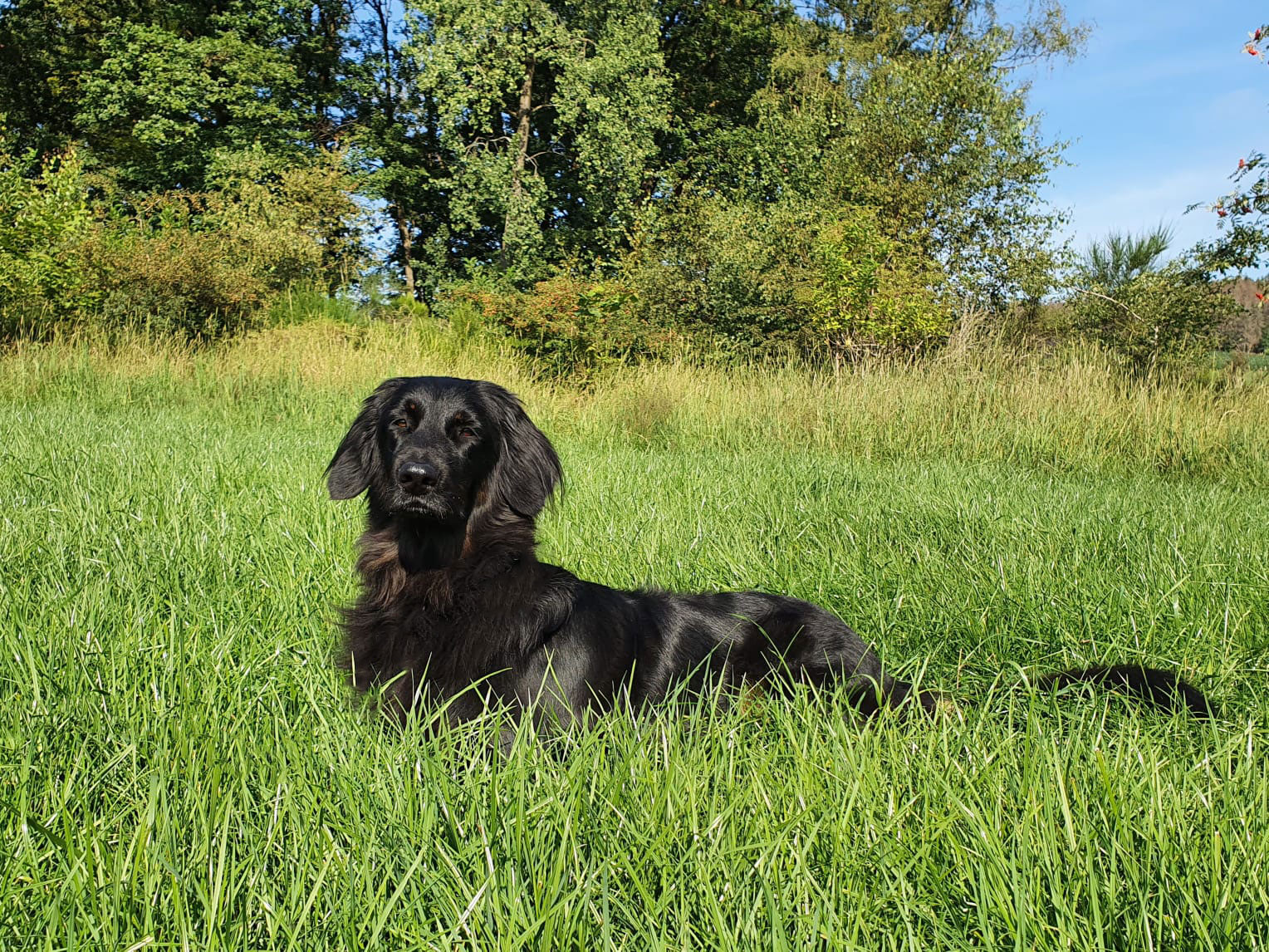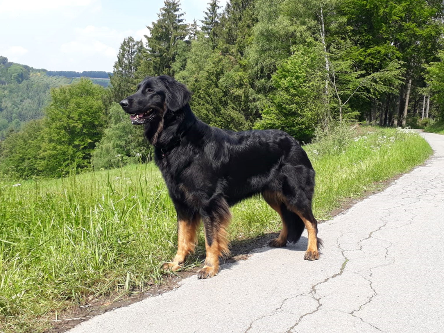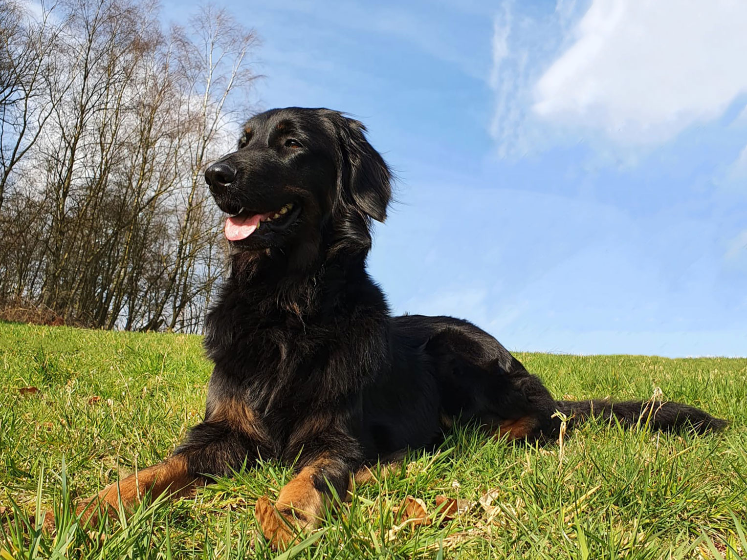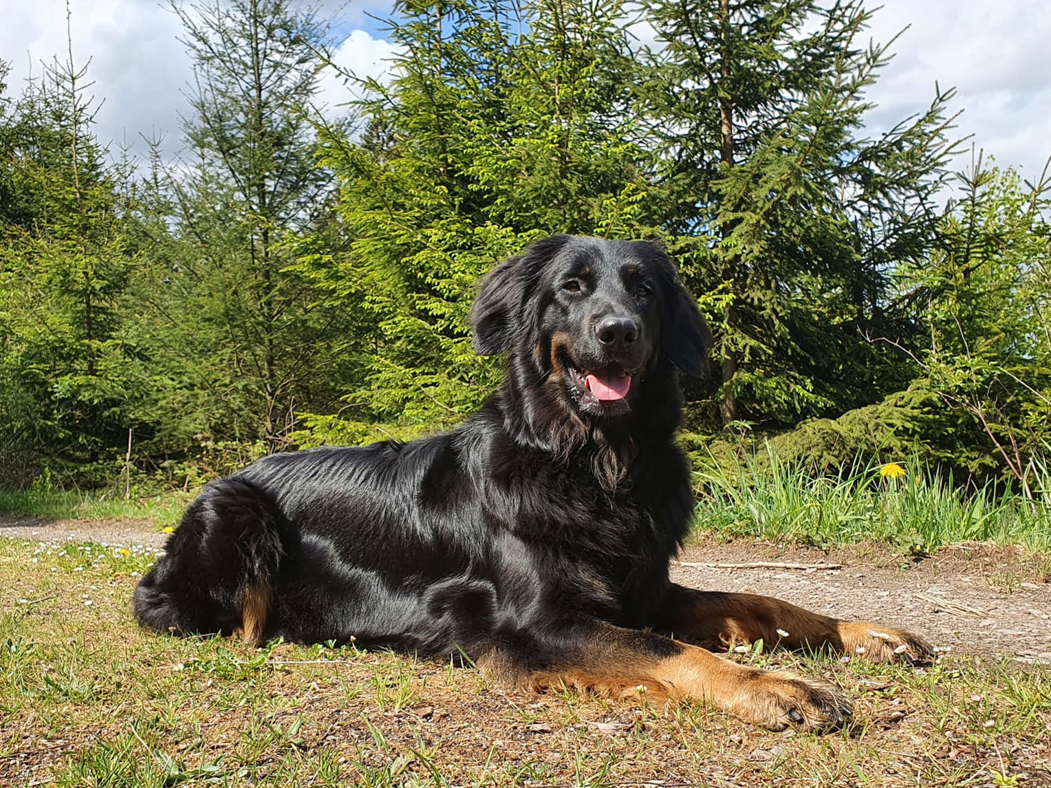 Enny entwickelte sich zu einer ausgeglichenen Hovawartdame mit einem sanftmütigen Wesen.
